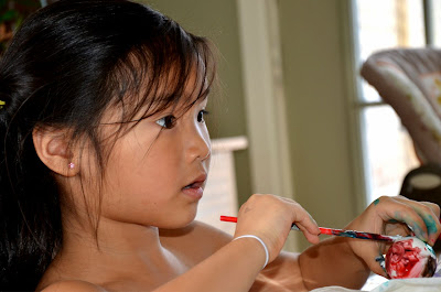 Les enfants ont adoré la visite. Il y avait plusieurs animaux : des chèvres, des brebis, des cochons, un paon, des poussins, des oies et des lapins. Sarah-Kym voulait toucher à tous les animaux et elle voulait leur donné constamment de la nourriture. Pour ce faire, elle "quêtait" des 0.25¢ à Geneviève pour acheter la nourriture permise à donner aux animaux, grrr... elle n'a aucune gêne notre poulette !